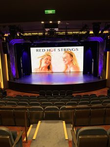 Sarah’s electric violin duo Red Hot Strings performs on the Spirit of Discovery for SAGA – following the beautiful Croatian Coast.